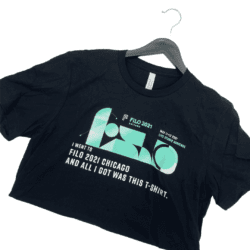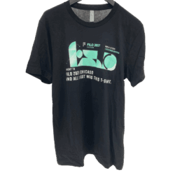 This tee features “I WENT TO FILO 2021 CHICAGO AND ALL I GOT WAS THIS T-SHIRT ” on the front, screen printed in white on a Bella & Canvas tee alongside teal shapes. This is great vintage addition to your black tee collection.