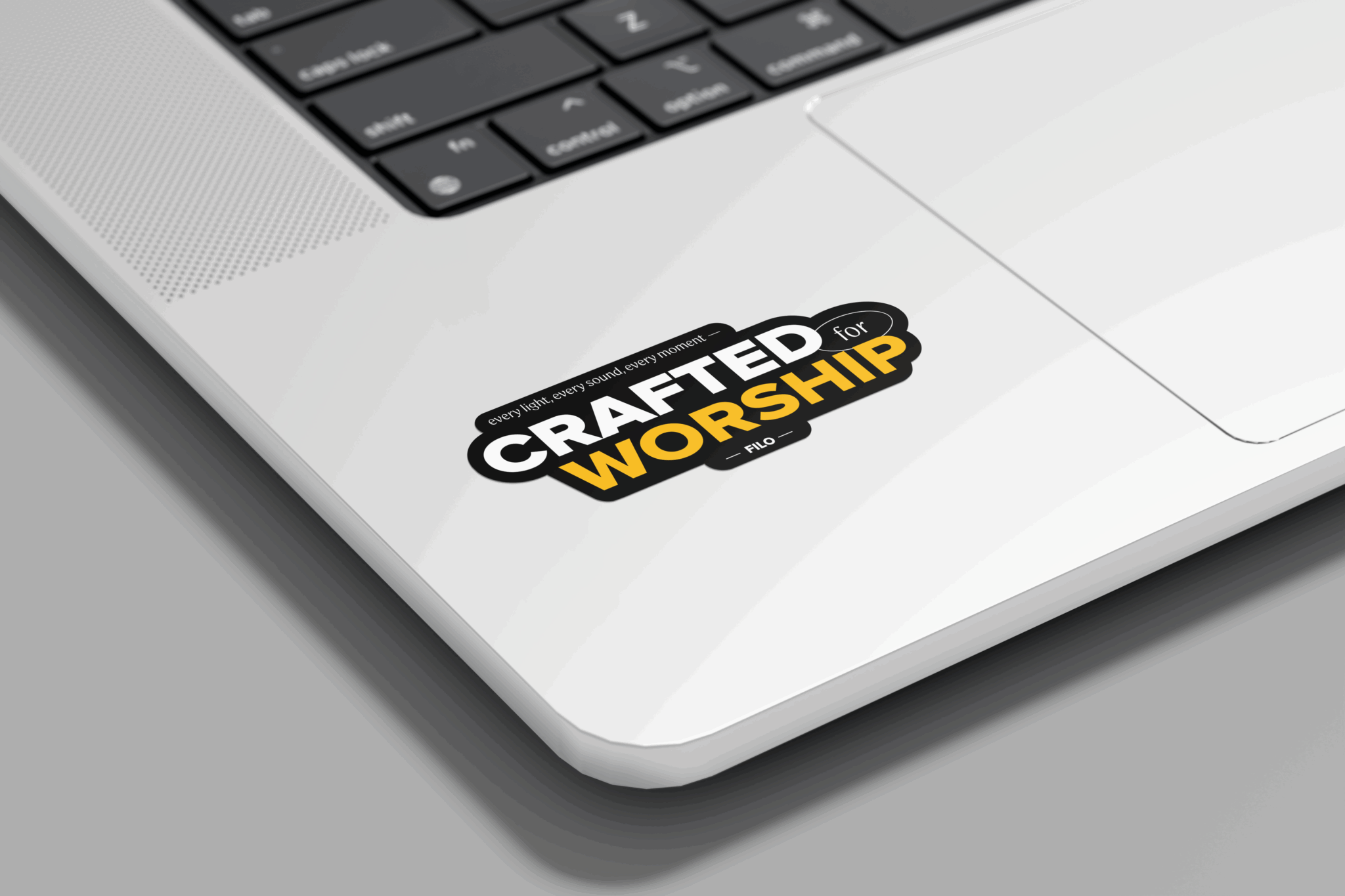 Carry inspiration with you through this Crafted for Worship sticker, featuring the phrase “Every Light, Every Sound, Every Moment – Crafted for Worship” in bold block fonts. Perfect for laptops, water bottles, or road cases, this durable sticker is a daily reminder of creativity and purpose.